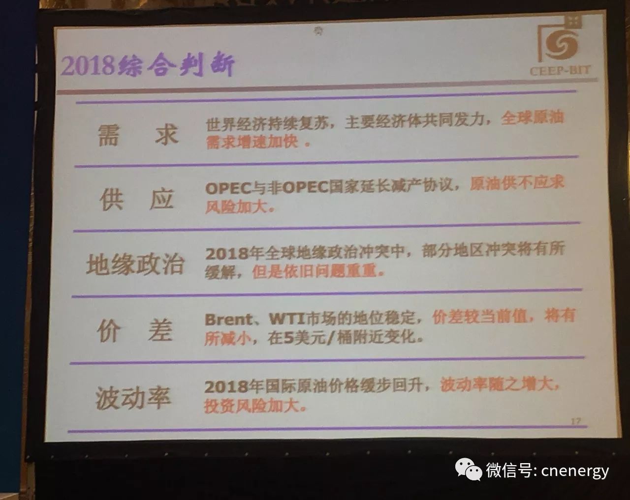 2018年能源情況綜合判斷
