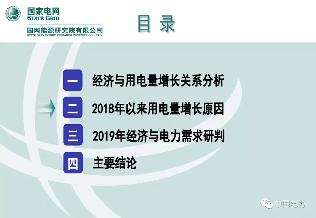 報(bào)告主要分4個(gè)部分:1.經(jīng)濟(jì)與用電量增長(zhǎng)關(guān)系分析;2.2018年以來(lái)用電量增長(zhǎng)原因;3.2019年經(jīng)濟(jì)與電力需求研判;4.主要結(jié)論。