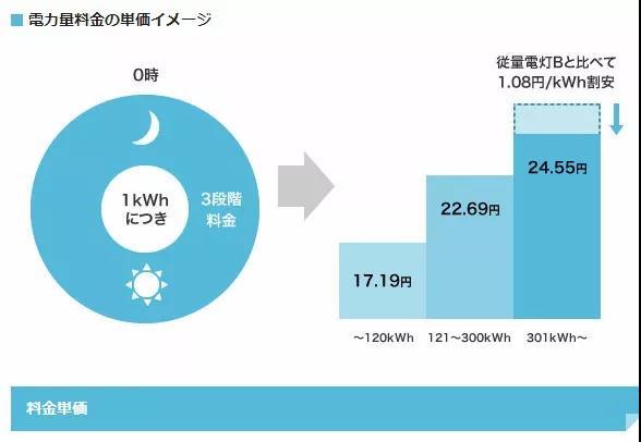 120度以下的部分:一度電17.19日元(約為1.06元人民幣)