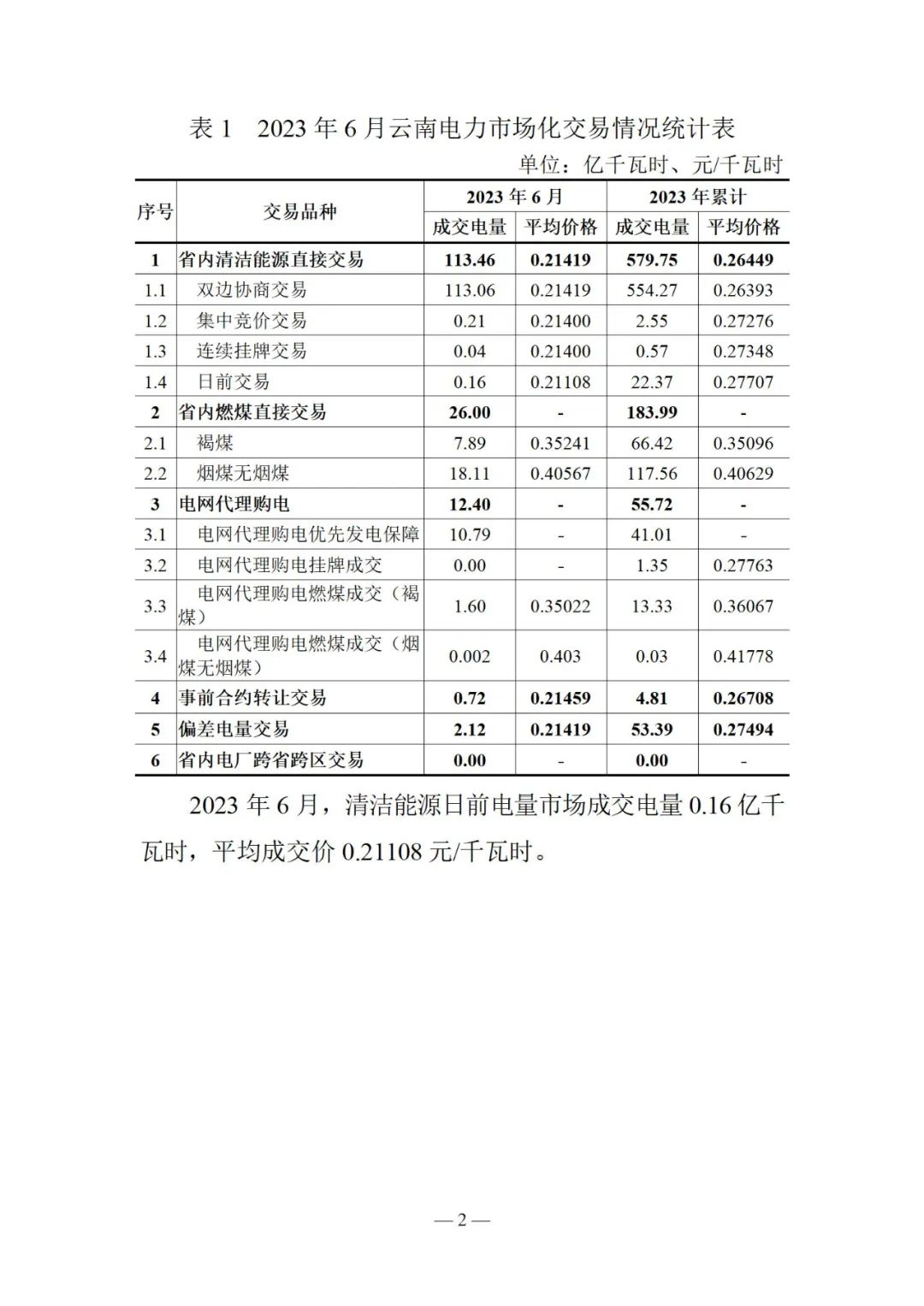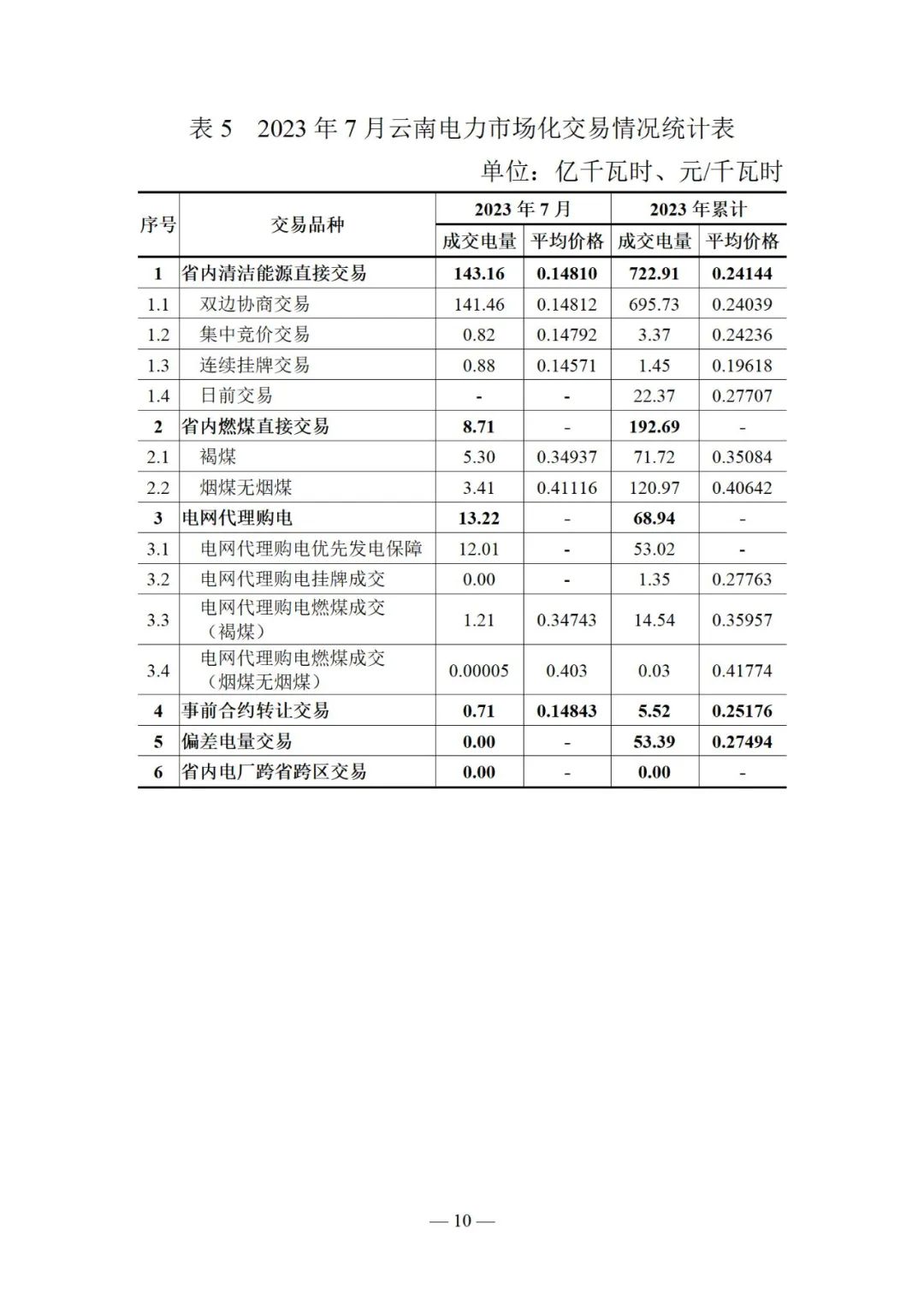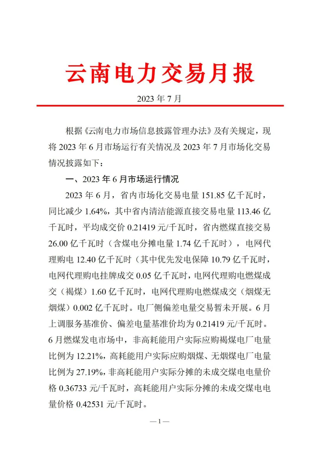 云南電力交易月報(2023年7月)