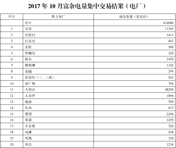 附件4:2017年10月富余電量集中交易結(jié)果(電廠)