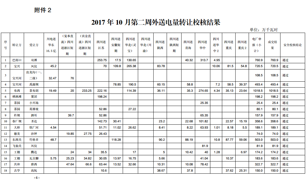 2017年10月20日,四川電力交易中心發(fā)布了10月第二周市場化電量轉(zhuǎn)讓公告。截至10月13日,四川電力交易中心共收到各發(fā)電企業(yè)10月市場化電量外送計劃轉(zhuǎn)讓申請1348筆,申報電量116333 04萬千瓦時。其中省內(nèi)市場化轉(zhuǎn)讓