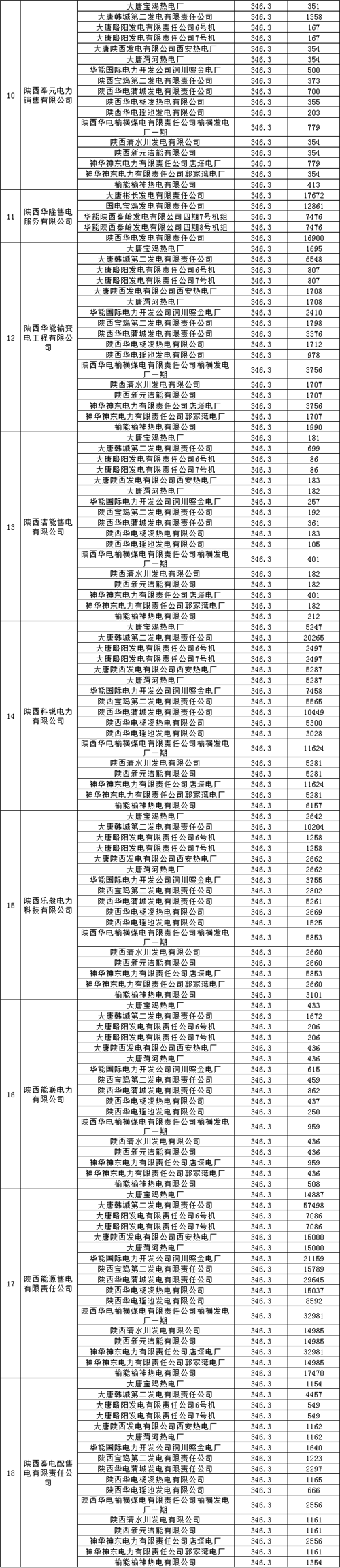 現(xiàn)將我省下半年集中競(jìng)價(jià)模式電力直接交易成交結(jié)果清單予以公布,請(qǐng)陜西省電力公司、陜西省地方電力(集團(tuán))公司、陜西電力交易中心有限公司組織各發(fā)電企業(yè)與用戶做好合同網(wǎng)簽及后續(xù)落實(shí)工作。