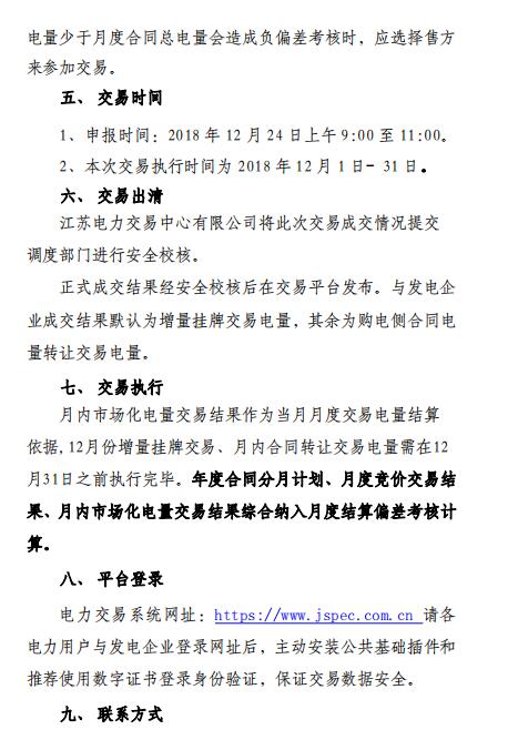 江蘇2018年12月電力市場月內(nèi)交易:采用連續(xù)掛牌交易模式