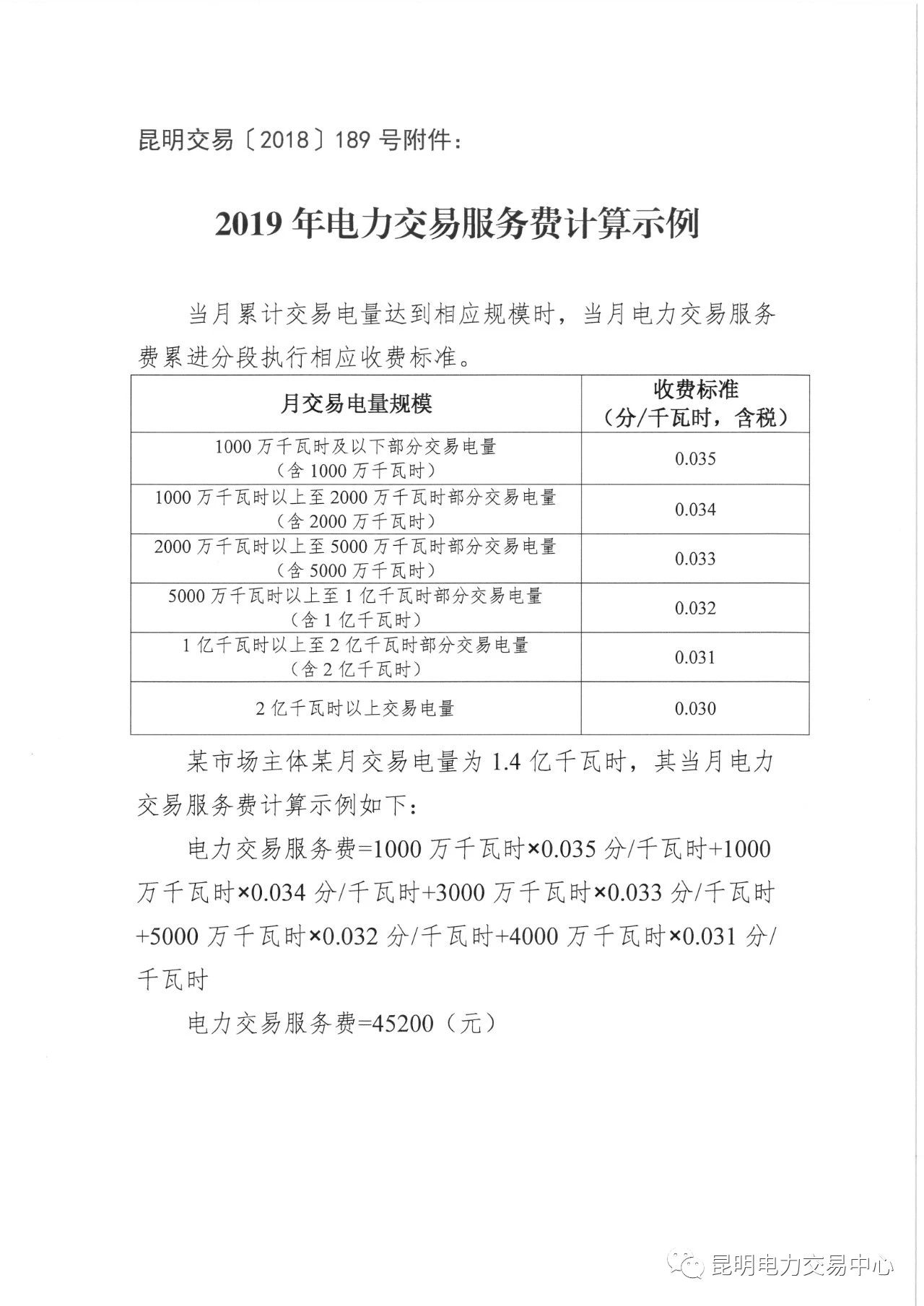 昆明電力交易中心日前發(fā)布了《關(guān)于公布2019年電力交易服務(wù)費收費標(biāo)準(zhǔn)的通知》