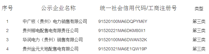 貴州新公示4家售電公司