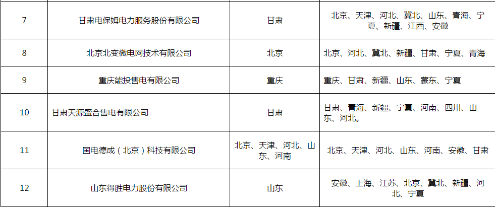 北京電力交易中心日前發(fā)布了《關(guān)于公示受理業(yè)務范圍變更的售電公司相關(guān)信息的公告》,有12家售電公司的業(yè)務范圍有變更,詳情如下: