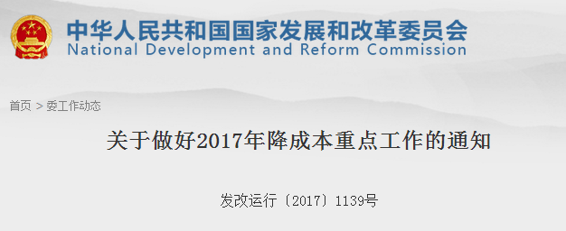 近日國家發(fā)改委發(fā)布了關(guān)于做好2017年降成本重點工作的通知。