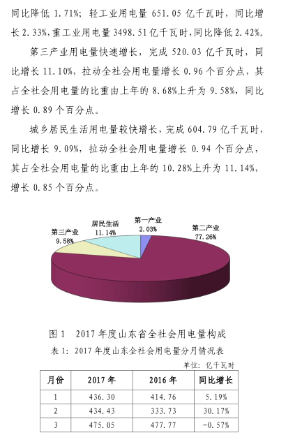 山東電網(wǎng)2017年度暨四季度電力市場(chǎng)交易信息報(bào)告:全社會(huì)用電量完成5430.16億千瓦時(shí)