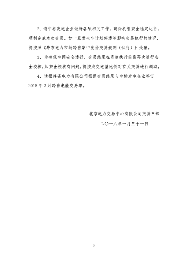 北京電力交易中心有限公司交易三部于2018年1月30日組織了2018年2月安徽購(gòu)福建跨省集中交易。