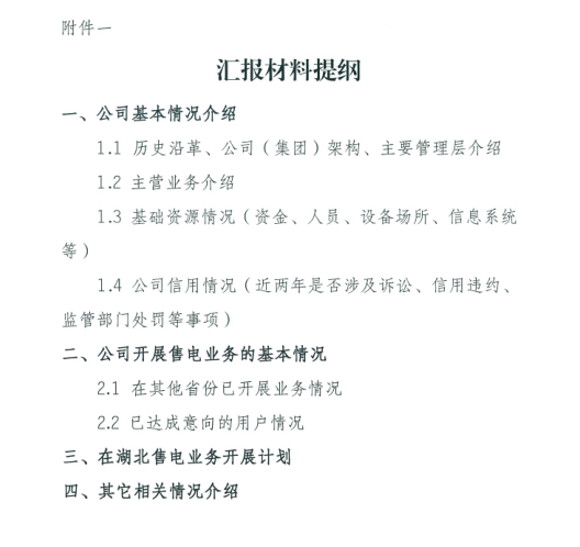 湖北省能源局日前發(fā)布了《關(guān)于開展售電公司調(diào)研工作的通知》,通知中稱,將于3月中旬對列入湖北省售電企業(yè)目錄的68家企業(yè)進(jìn)行調(diào)研,以了解公司開展售電業(yè)務(wù)的基本情況、聽取下一步對相關(guān)工作的意見和建議。詳情如下: