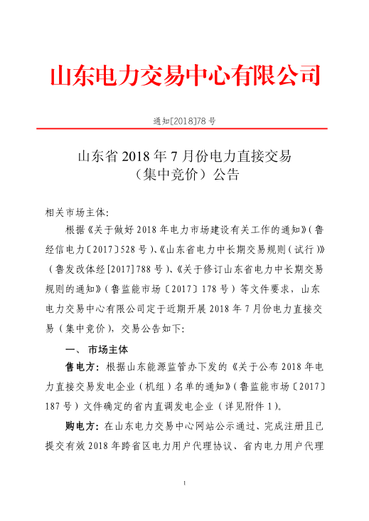 山東2018年7月份電力直接交易(集中競價、雙邊協商)6月22日展開(附名單)