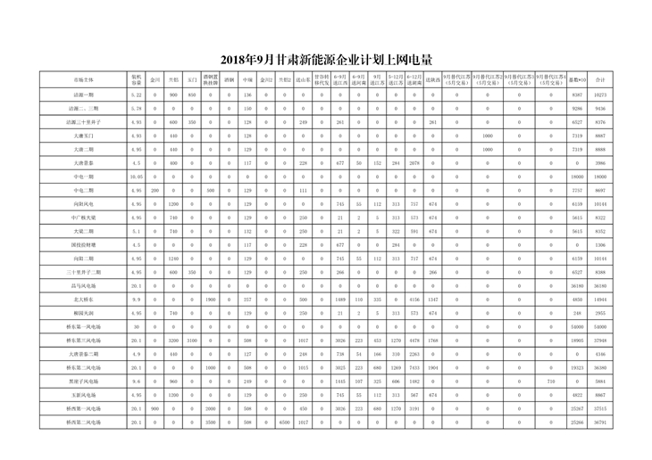 附件:2018年9月甘肅新能源企業(yè)計(jì)劃上網(wǎng)電量