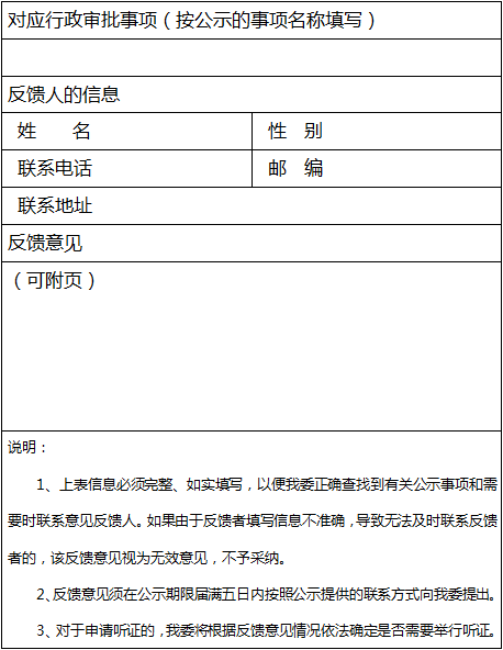 廣東省發(fā)展改革委行政審批前公示意見反饋表