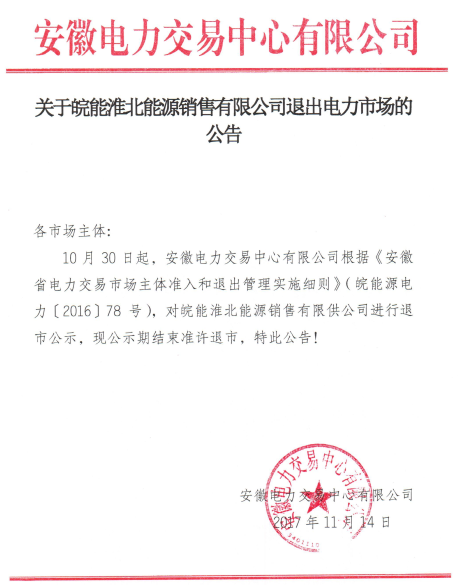 退出|安徽皖能淮北售電公司正式退出電力市場