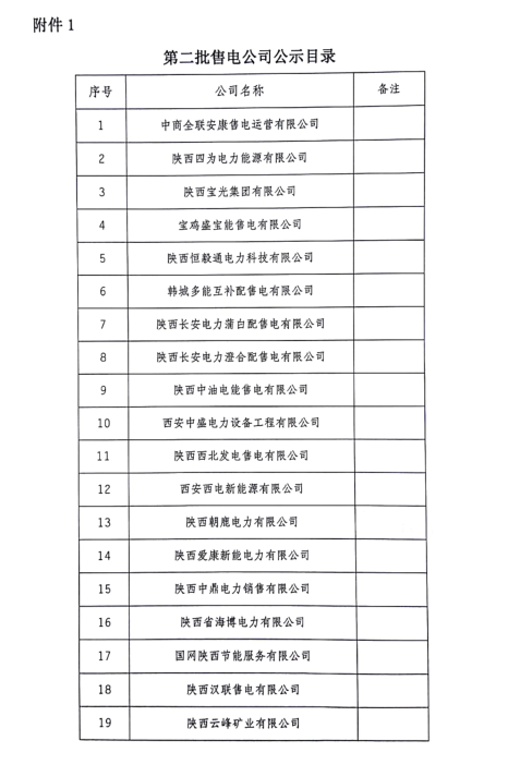 陜西第二批41家售電公司公示名單來(lái)了