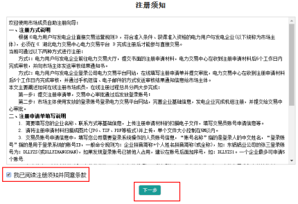 打開(kāi)注冊(cè)須知后,需完整閱讀平臺(tái)使用協(xié)議后,勾選“我已閱讀注冊(cè)須知并同意條款”,并點(diǎn)擊【下一步】。
