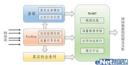 我們知道,網(wǎng)絡(luò)安全保障措施雖然在不斷地完善,但攻擊者的攻擊手法也在不斷地變換,而且越來越精明,他們總會(huì)不斷的推出新的方法躲過監(jiān)測設(shè)備的追蹤,攻克被攻擊者的防御系統(tǒng)。TA-NET/Flow蜜網(wǎng)場景三大功能的結(jié)合,正是解決以上問題的有效途徑:首先由網(wǎng)絡(luò)流量的檢測和重定向保證了業(yè)務(wù)主機(jī)的正常運(yùn)行,將攻擊流量轉(zhuǎn)入蜜罐中,再由蜜網(wǎng)捕獲和網(wǎng)絡(luò)審計(jì)兩大模塊收集和記錄攻擊者的后續(xù)行為;對于無法立即識(shí)別的事件,也將被詳細(xì)的記錄下來,以備后續(xù)可能的異常分析。
