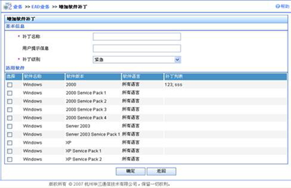 EAD系統(tǒng)同時可以根據(jù)實(shí)際情況來制定補(bǔ)丁安裝的策略,可以做到只安裝重要的補(bǔ)丁,另外可以根據(jù)日常網(wǎng)絡(luò)維護(hù)的經(jīng)驗(yàn)將一些安裝后容易引起系統(tǒng)問題的補(bǔ)丁不要求安裝。下圖為EAD系統(tǒng)補(bǔ)丁安裝策略操作界面。