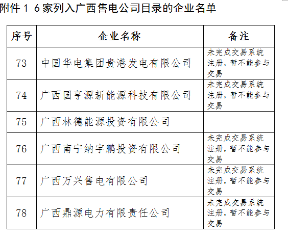 關(guān)于公布6家列入廣西售電公司目錄企業(yè)名單的通知