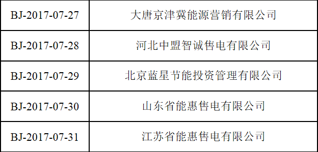 按照國(guó)家發(fā)改委、國(guó)家能源局《售電公司準(zhǔn)入與退出管理辦法》的要求,北京電力交易中心受理了下列售電公司的注冊(cè)申請(qǐng),對(duì)售電公司提交的市場(chǎng)準(zhǔn)入申請(qǐng)材料進(jìn)行了完整性核驗(yàn),現(xiàn)將企業(yè)名單及基本情況予以公示。