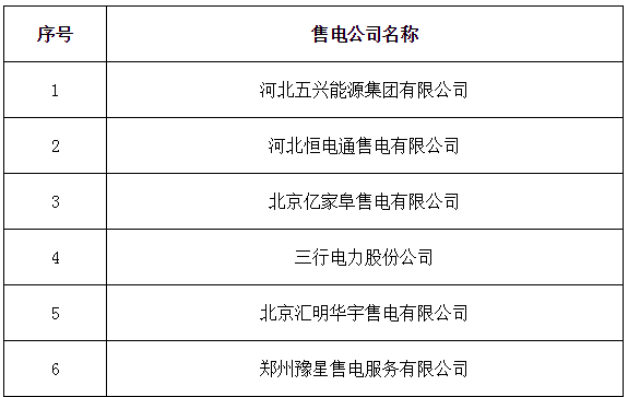 附件1:北京電力交易中心推送注冊(cè)完成公示售電公司名單