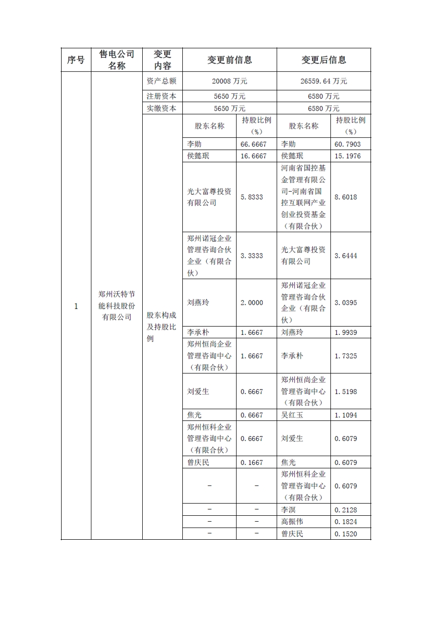 河南電力交易中心對鄭州沃特節(jié)能科技股份有限公司提交的市場注冊信息變更材料進(jìn)行了受理,現(xiàn)將有關(guān)情況予以公示。公示期:2018年8月22日至2018年9月21日,時間1個月。
