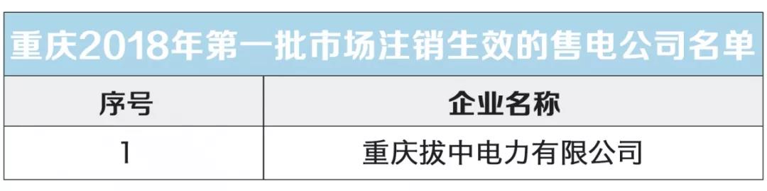 重慶關(guān)于公布售電公司市場注銷公示結(jié)果的公告(2018年第一批)