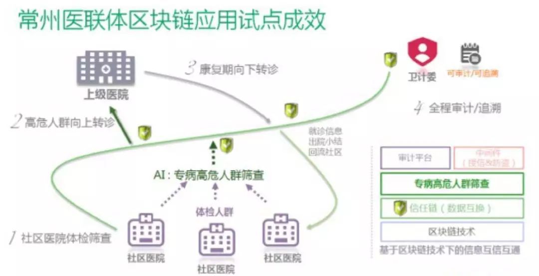 國(guó)內(nèi)方面,2017年8月,阿里健康與常州市醫(yī)聯(lián)體達(dá)成共識(shí),合作開(kāi)展區(qū)塊鏈項(xiàng)目試點(diǎn),旨在將新興區(qū)塊鏈技術(shù)應(yīng)用于醫(yī)聯(lián)體底層技術(shù)架構(gòu)體系中,實(shí)現(xiàn)當(dāng)?shù)蒯t(yī)療機(jī)構(gòu)之間安全可控的數(shù)據(jù)互聯(lián)。