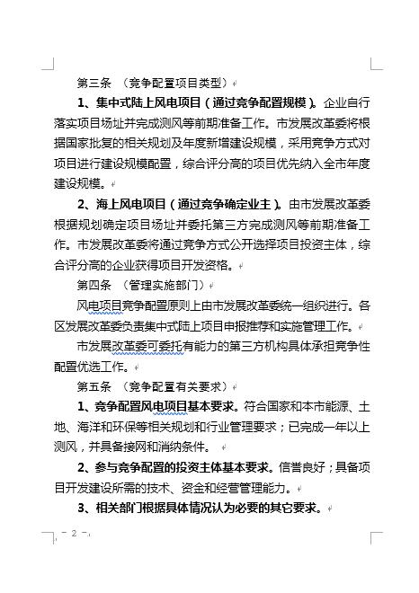 上海市發(fā)改委發(fā)布《上海市風(fēng)電項(xiàng)目競(jìng)爭(zhēng)配置管理辦法》