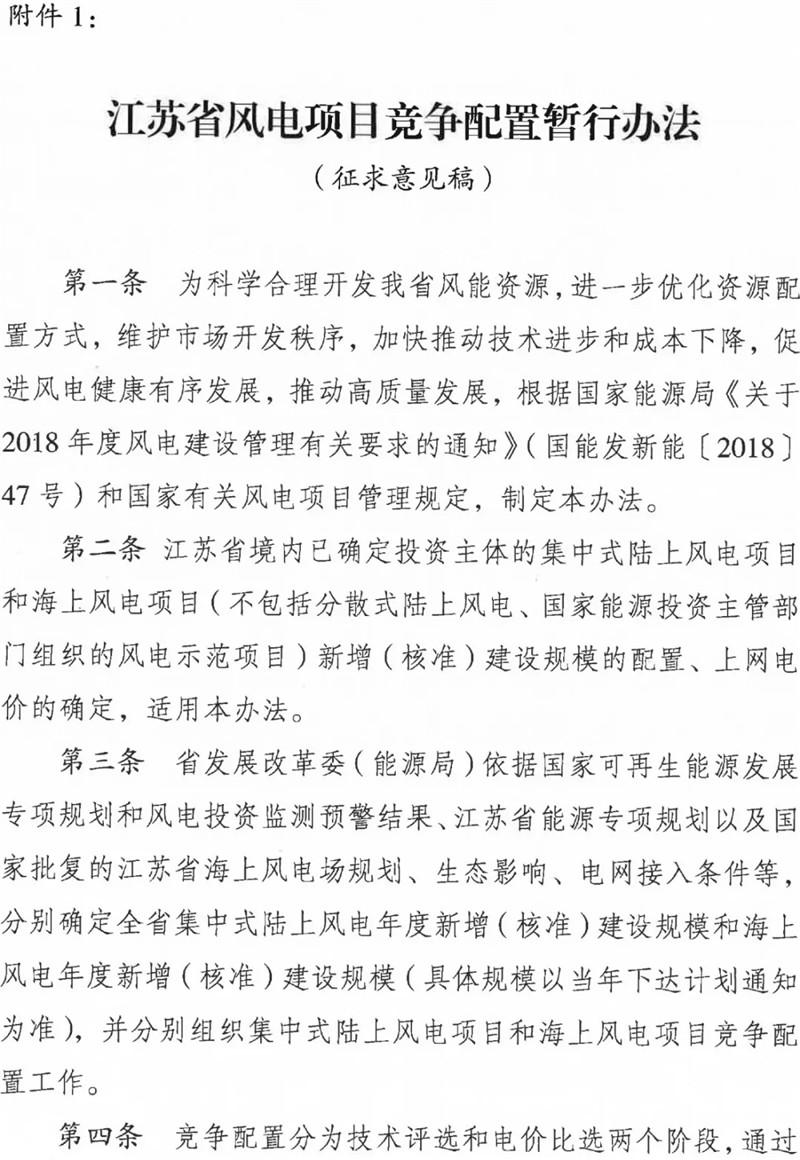 《江蘇省風(fēng)電項(xiàng)目競爭配置暫行辦法》(征求意見稿)、《江蘇省未確定投資主體風(fēng)電項(xiàng)目競爭配置暫行辦法》(征求意見稿)網(wǎng)上意見征集