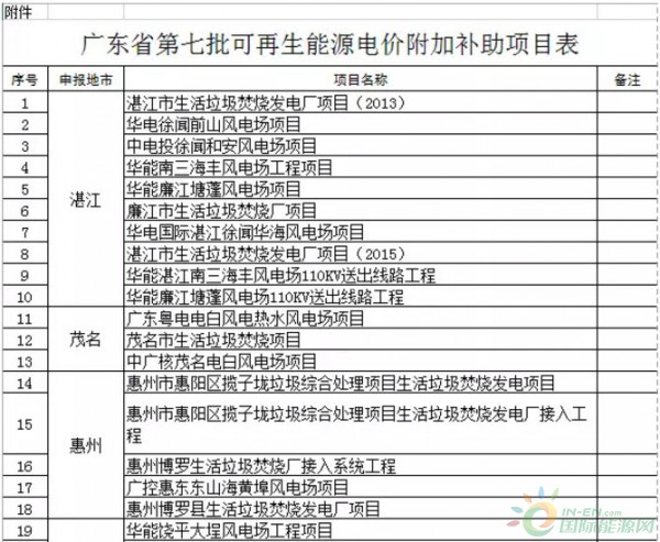 廣東省公示第七批51個可再生能源電價附加補助項目,25個風(fēng)電項目入圍