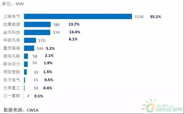 2017年中國風(fēng)電整機商裝機排名及市場份額:累計裝機容量達(dá)到1.88億千瓦 同比增長11.7%
