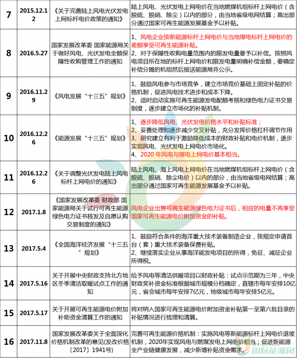 國家政策對(duì)風(fēng)電的支持是促進(jìn)風(fēng)電取得如今成就的重要條件。風(fēng)哥梳理了近年來關(guān)于風(fēng)電補(bǔ)貼的一些政策,如下表所示: