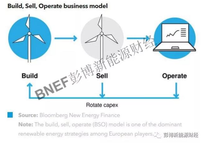 在歐洲的可再生能源BSO(建設(shè)、出售、運營)模式下,電廠先建設(shè)可再生能源資產(chǎn),而后向機構(gòu)投資者出售股份。短期來看,這種模式仍將主導歐洲可再生能源商業(yè)模式。