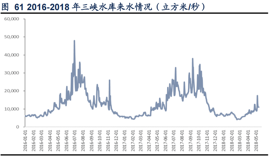 2018 前四個(gè)月年全國水電發(fā)電量為 2633 億千瓦時(shí),同比增長 1.3%,主要得益于 2018 年處于來水豐年。2018 年第一季度三峽水庫來水情況略好于 2017 年同期,按照來水一般下半年偏豐的情況,我們預(yù)計(jì) 2018 年下半年來水將持續(xù)豐沛,水電發(fā)電量將會持續(xù)增長。
