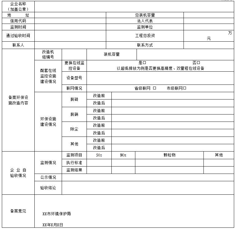 燃煤電廠脫硫、脫硝、除塵等煙氣環(huán)保設施改造備案登記表