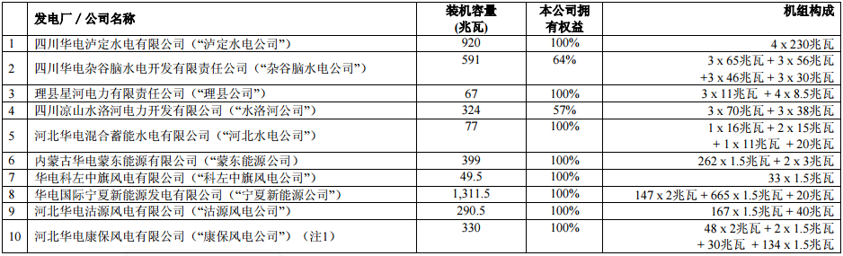 2)控股可再生能源發(fā)電機(jī)組詳細(xì)情況如下:
