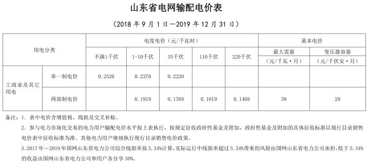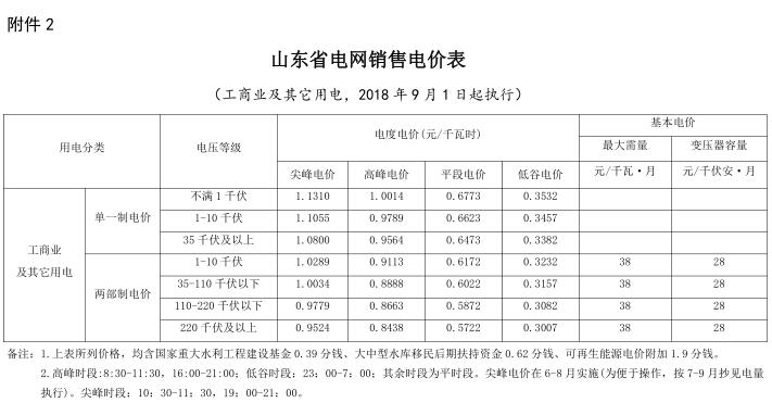 2.山東省電網(wǎng)銷售電價(jià)表、山東省電網(wǎng)輸配電價(jià)表(2018年9月1日起執(zhí)行)