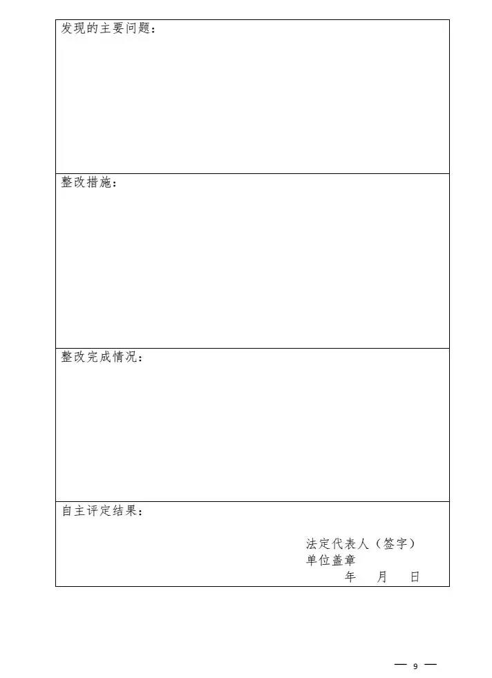 第九條 農(nóng)村水電站企事業(yè)單位根據(jù)自查、自評情況,完成自評報告。自評報告包括:單位概況、安全生產(chǎn)管理狀況、基本條件的符合情況、自主評定工作開展情況、自評打分表(作為附件)、自主評定結(jié)果等。