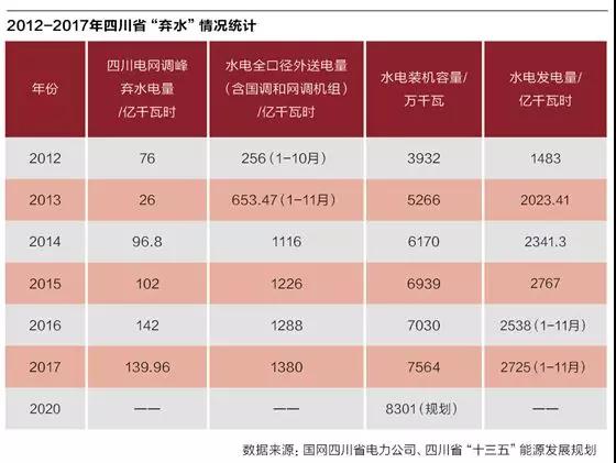 國家電網(wǎng)四川省電力公司此前對外披露的數(shù)據(jù)顯示:2012-2016年,四川電網(wǎng)水電“棄水”電量分別為76億、26億、97億、102億和142億千瓦時。