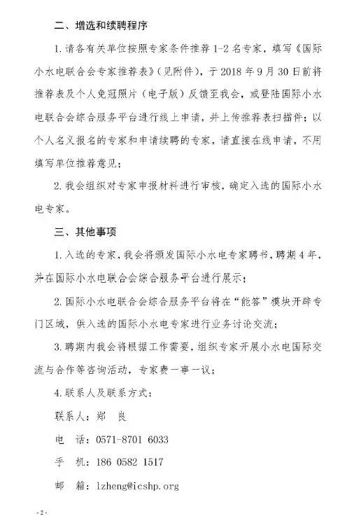 國際小水電專家申報(bào)截止日期為2018年9月30日。