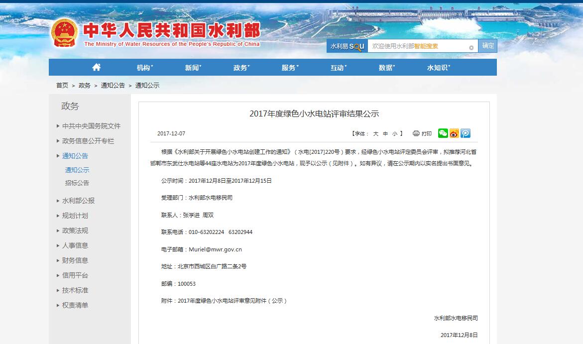 近日,水利部公示全國第一批綠色小水電站名單,原文如下:根據(jù)《水利部關(guān)于開展綠色小水電站創(chuàng)建工作的通知》(水電[2017]220號)要求,經(jīng)綠色小水電站評定委員會評審,擬推薦河北省邯鄲市東武仕水電站等44座水電