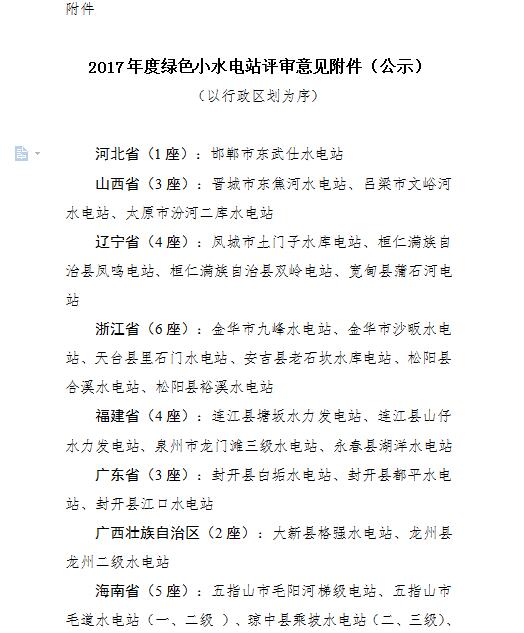 近日,水利部公示全國第一批“綠色小水電站”名單,原文如下: