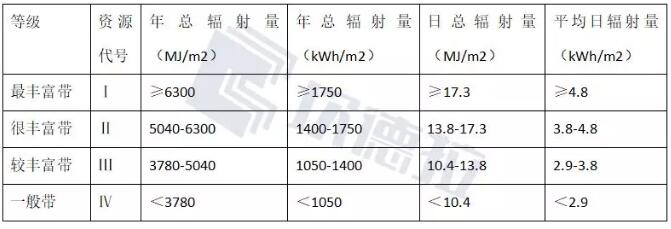 ▼輻射資源豐富程度對照表