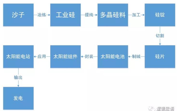 并且,光伏產(chǎn)業(yè)鏈涉及的重要環(huán)節(jié)多達十幾個,是個產(chǎn)業(yè)協(xié)同性很強的產(chǎn)業(yè)。這里,我給對光伏產(chǎn)業(yè)不太了解的朋友,簡單畫一個光伏產(chǎn)業(yè)鏈的示意圖。