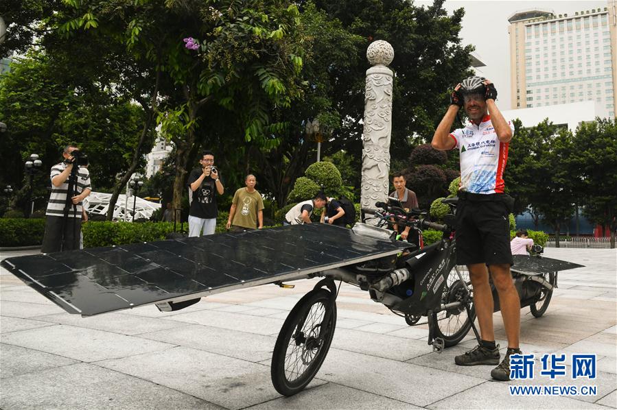 8月3日上午,比利時(shí)人拉夫˙范胡勒在經(jīng)過(guò)12000公里的艱苦騎行后,抵達(dá)終點(diǎn)廣州市人民公園,成為2018年中法“一帶一路˙太陽(yáng)之旅”自行車?yán)惖墓谲?。在沒(méi)有后援、沒(méi)有固定路線的情況下,他憑借一輛太陽(yáng)能電動(dòng)自行車,用45天穿越了歐亞大陸。