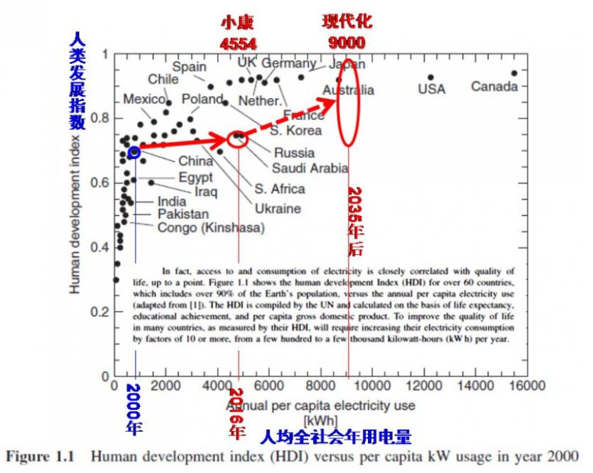 為什么社會現(xiàn)代化程度和光伏有關(guān)系?《Handbook of Photovoltaic Sci. and Eng.》這本書給出了聯(lián)合國公布的國家人類發(fā)展指數(shù)與國家人均用電量分布圖??v軸是人類發(fā)展指數(shù),用比較好理解的意思是一個國家生活的幸福程度,橫軸是人均全社會用電量。