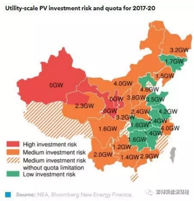 2017到2020年,“低風(fēng)險(xiǎn)”地區(qū)的光伏電站新增建設(shè)指標(biāo)。