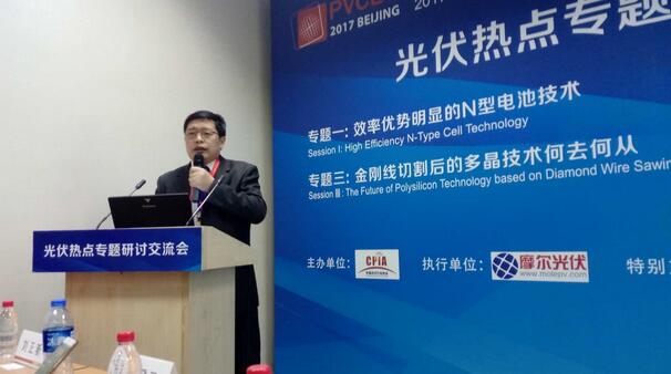 2017年10月17日-19日,2017中國光伏大會暨展覽會(PVCEC2017)在北京隆重召開。中科院上海微系統(tǒng)與信息技術研究所新能源技術中心主任劉正新在光伏熱點專題研討會上發(fā)表了題為后PERC時代高效率太陽能電池技術路線分
